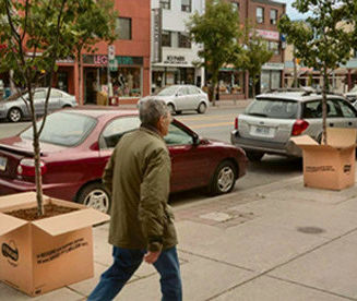 By reusing their cartons Frito Lay have saved over five million trees. To demonstrate this fact, trees growing in recycled shipping cartons were placed around the city.​